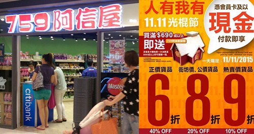 香港零售連鎖店“阿信屋”在今年雙11推出多檔折扣。圖自《明報》網(wǎng)站