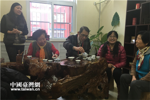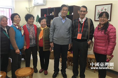 高雄本安里里長林辛福擔任核桃園社區(qū)榮譽主任,到為老中心與社區(qū)大媽喝茶,話家常。(中國臺灣網(wǎng) 段雯婷 攝)