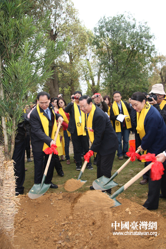 中國臺灣網4月3日湖南炎陵消息 3日上午,赴湘參加“第二屆在臺湘籍后裔湖南行”活動的200余名臺灣鄉親與大陸同胞齊聚炎帝陵,兩岸同胞在炎帝陵揮鏟揚土共植同根樹,增色秀美山川,表達兩岸同胞血脈相連的親情。