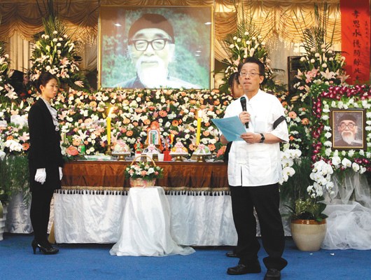 經(jīng)學(xué)宗師愛新覺羅·毓鋆10日舉行告別式,毓老的學(xué)生劉君祖代表緬懷先師。 聯(lián)合報圖