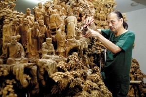所以現(xiàn)在他已經(jīng)開始考慮少賺錢甚至是不賺錢,而多做一些能傳世的東西。當(dāng)年他與兩百人花了六年時(shí)間完成日本無量壽寺的雕刻就給了他很大的啟發(fā)。“接下來我想做一些比如‘大好河山’之類的題材,把每個(gè)省最有代表性的風(fēng)景名勝刻下來。還有農(nóng)歷新年前會(huì)出一本書,詳盡地介紹如何分辨木材如何使用刻刀、如何磨刀,分享我三十多年來的經(jīng)驗(yàn)。”