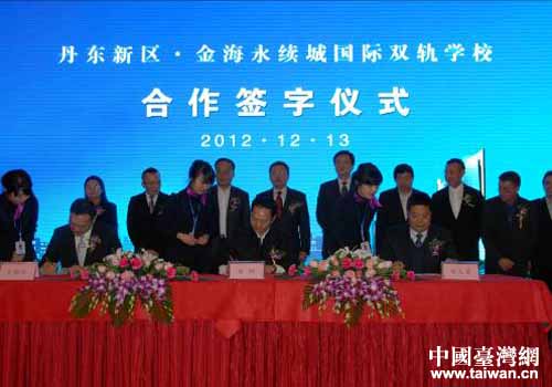 金海永續(xù)城國際雙軌學(xué)校簽字儀式。(圖片來源:丹東市臺(tái)辦)