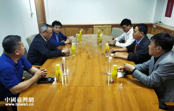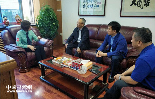 和企業(yè)負(fù)責(zé)人交流。(圖片來源:沈陽市臺(tái)辦)