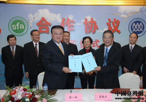 中國臺灣網11月4日上海消息 11月3日下午,上海市食品協會理事長葛根慶與臺灣省漁會理事長黃一成在上海奧林匹克俱樂部簽訂了以水產品貿易、漁業產業化及在上海構建特色水產品專業交易平臺為內容的合作協議。