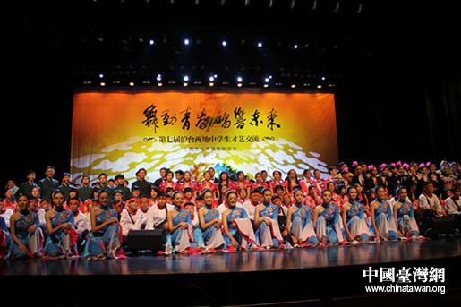 “舞動青春 唱響未來”——第七屆滬臺兩地中學(xué)生才藝交流在上海舉行,圖為兩岸中學(xué)生才藝表演后合影留念。(圖片來源:上海市臺聯(lián))