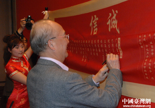 參與誠信經(jīng)營倡議活動(dòng)的臺商在倡議書上簽名。(上海市臺辦 葛鳳章 攝)