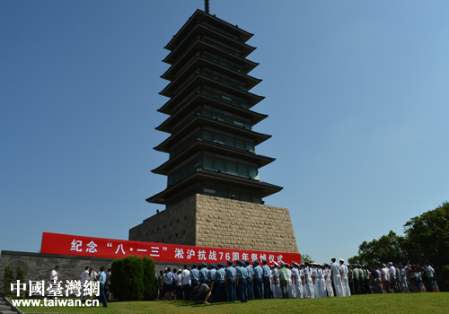 中國臺灣網8月14日上海消息 8月13日,是“八·一三”淞滬抗戰76周年紀念日。當天,上海軍民在淞滬抗戰紀念館隆重集會,舉行祭悼儀式。上午8時30分,祭悼儀式開始。海、陸、空三軍指戰員、社會各界人士及淞滬抗戰老兵代表等三百多人向淞滬抗戰烈士墻敬獻花籃,默哀。