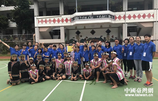 第三站交流活動是南投縣新鄉(xiāng)小學(xué)。在王勝輝校長對學(xué)校作介紹之后,長寧區(qū)少年宮的孩子們先演唱了三首作品,優(yōu)美的歌聲、投入的神情打動了臺灣小朋友們。新鄉(xiāng)小學(xué)合唱團(tuán)的小朋友們也用布農(nóng)語演唱了《kipahpah ima》《思鄉(xiāng)曲》《豐年祭》《童趣》,孩子們的聲音純凈、自然,深深地感動了在座的每一個人。在合唱團(tuán)交流演出后,長寧區(qū)少年宮的團(tuán)員們與身著部落傳統(tǒng)服飾的臺灣小朋友們合影留念。