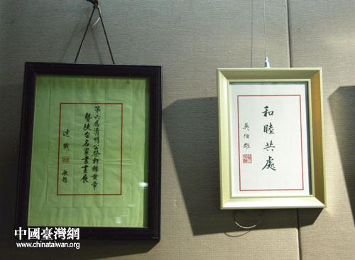 中國國民黨榮譽(yù)主席連戰(zhàn)、吳伯雄先生分別題詞。(陜西省臺(tái)辦 張群莉 攝)
