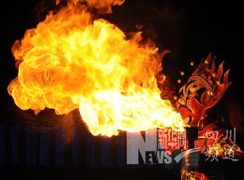2月6日,來自四川的演員在臺北表演四川傳統“絕活”《吐火》。