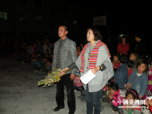 張平宜和大營盤學(xué)校的羅校長共同主持歡慶彝族年篝火晚會(huì)(圖片來源:四川省臺(tái)辦)