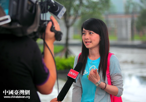 臺(tái)灣“中視”公司節(jié)目主持人蕭羽潔接受德陽(yáng)電視臺(tái)采訪。(圖片來源:德陽(yáng)市臺(tái)辦)