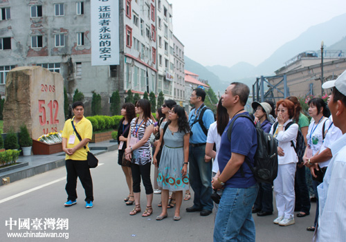 參訪團一行考察北川地震遺址紀念館。(圖片來源:綿陽市臺辦)