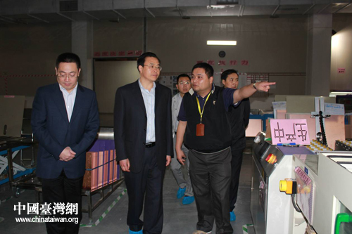 張軍一行先后考察了志超科技(遂寧)有限公司、立華彩。ㄋ鞂帲┯邢薰镜扰_資企業,對近年遂寧臺資企業的發展壯大給予了充分肯定。他說,四川省搶抓兩岸關系持續發展和臺資內移的重要機遇,主動作為,務實推進,川臺經貿交流合作取得快速發展。遂寧正是抓住這輪臺商投資的機遇,積極主動承接為成都、重慶等地大企業服務的配套企業,實現了與臺灣經貿合作大的飛躍。