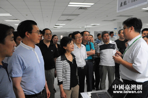 四川省臺辦干部職工一行在臺資企業(yè)仁寶電腦(成都)有限公司考察調(diào)研。(圖片來源:四川省臺辦)