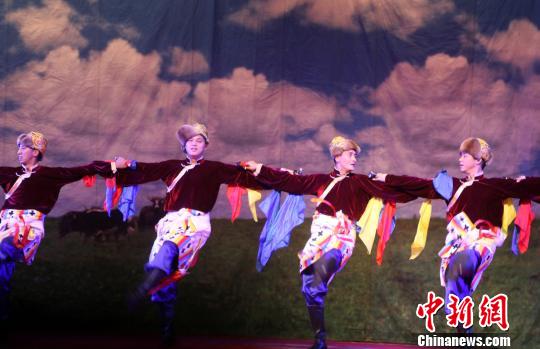 10月15日晚,四川阿壩州民族歌舞團在臺灣軍隊藝文中心表演具有濃郁藏羌特色的歌舞。 陳立宇 攝