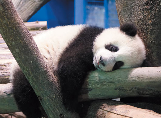 贈(zèng)臺(tái)大熊貓幼仔今見客 “是個(gè)四川壯妹”(圖)