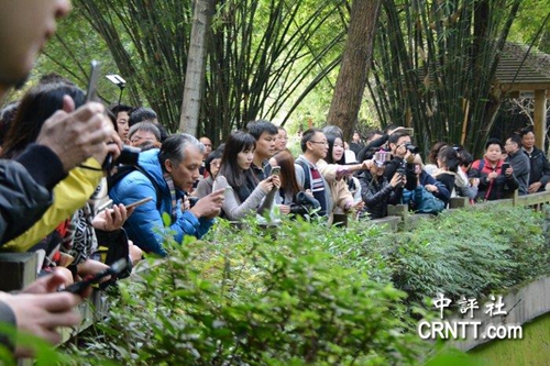 成都大熊貓的一舉一動(dòng),吸引無數(shù)觀光客的目光。(中評(píng)社 趙家麟攝)