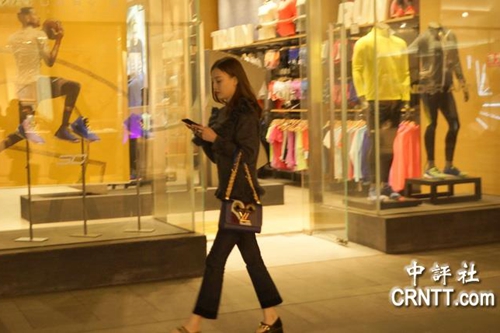 成都太古里,打扮時(shí)尚的女子走過精品店。(中評(píng)社 黃文杰攝)