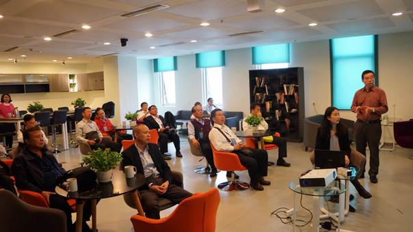 德陽(yáng)市臺(tái)辦副主任謝錦輝向參訪團(tuán)介紹海峽兩岸青年創(chuàng)業(yè)園發(fā)展情況。(圖片來源:德陽(yáng)市臺(tái)辦)