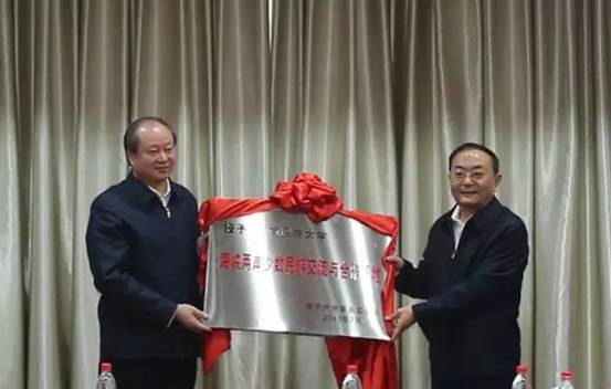 12月28日,國(guó)家民委副主任李昌平(右)向西南民族大學(xué)授牌“海峽兩岸少數(shù)民族交流與合作基地”。