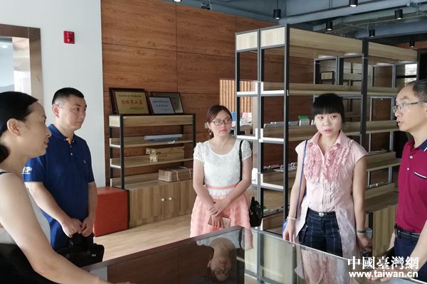 調研組在“126”文創園了解“女紅”和拼布文化培訓基地開展教學和培訓情況。(圖片來源:四川省臺辦)
