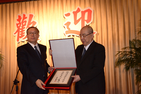 李鴻忠在圓山飯店與吳伯雄先生互贈禮品