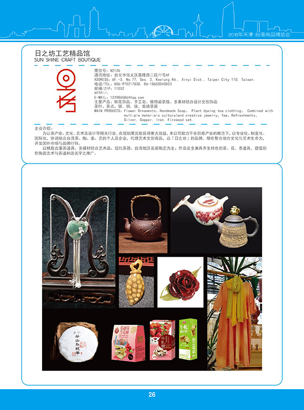 臺灣精致品牌商品展內展出臺灣精致的文創產品和極具創意的高科技產品以及突出臺灣特色的伴手禮,讓參展民眾感受臺灣幸福的文化和與眾不同的生活美學和具有臺灣特色的品牌價值。