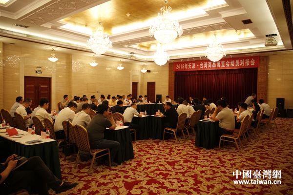 2018年天津·臺(tái)灣商品博覽會(huì)動(dòng)員對接會(huì)現(xiàn)場。(圖片來源:天津市臺(tái)辦)