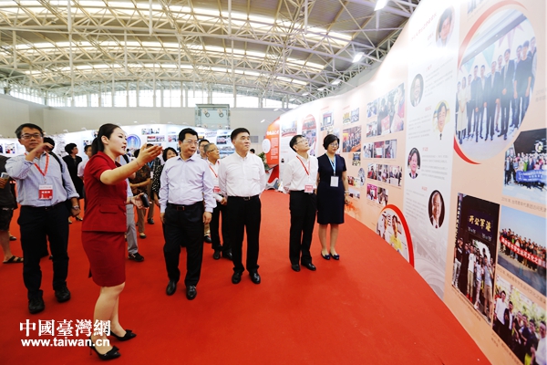 天津市委常委、統(tǒng)戰(zhàn)部部長冀國強與中國國民黨副主席郝龍斌共同參觀“兩岸一家親”津臺交流合作成果展。(中國臺灣網(wǎng) 趙苗青 攝)