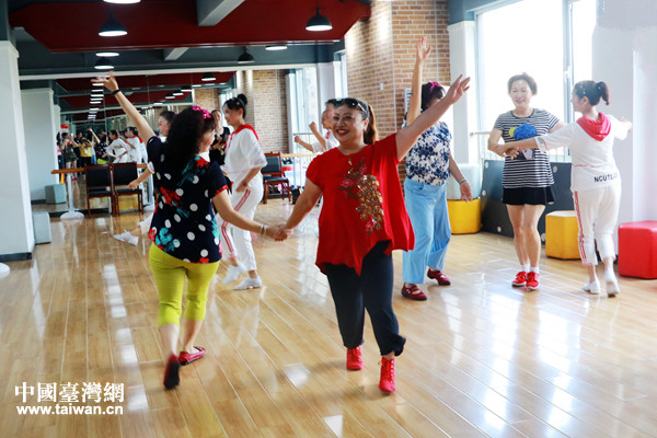 來自苗栗舞蹈協(xié)會的同胞與青和居社區(qū)民眾開展舞蹈聯(lián)誼。(中國臺灣網(wǎng) 趙苗青 攝)