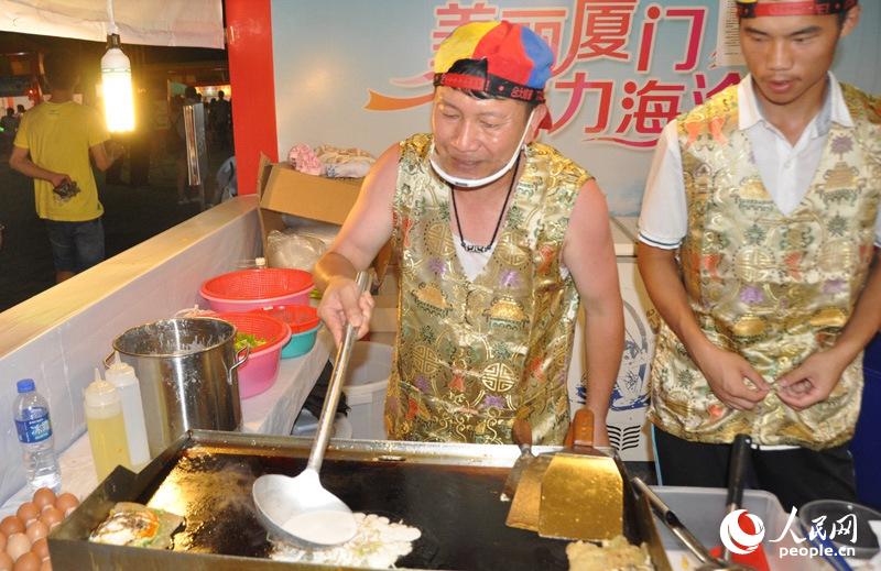 來(lái)自臺(tái)北吳萬(wàn)豐師傅制作臺(tái)灣名吃“蛤仔煎”