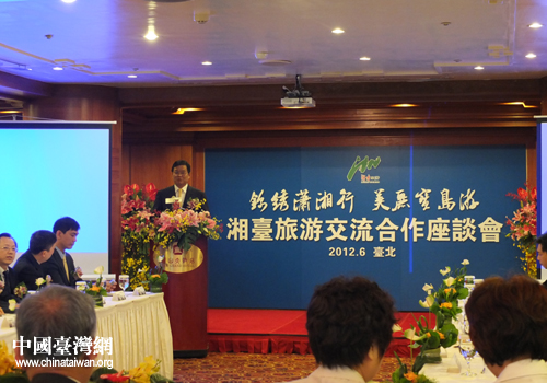 何報(bào)翔在致辭中說,臺(tái)灣是著名的旅游勝地,“山高、林密、瀑多、岸奇”的鮮明特色吸引著無數(shù)游人。他說,湖南是一個(gè)旅游資源大省,山水秀美、風(fēng)光奇特,歷史文化底蘊(yùn)深厚,民俗風(fēng)情多姿多彩。發(fā)展湘臺(tái)兩地觀光旅游與合作交往,不僅是兩地人民的共同愿望,也符合兩地發(fā)展的長遠(yuǎn)利益。兩地旅游資源有著充分的互補(bǔ)關(guān)系、旅游產(chǎn)業(yè)有著扎實(shí)的交流基礎(chǔ)、旅游業(yè)界有著強(qiáng)烈的合作愿望。