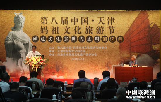 當天下午舉行的媽祖文化與現代文明研討會匯聚兩岸20余位專家學者共同參與,并就基于“一帶一路”視角的天津旅游業發展研究、傳承中華傳統文化把握獨特戰略資源、媽祖信仰與東南亞華人社會等課題展開深入的研討與交流。與會嘉賓表示,媽祖文化是中華民族的寶貴精神財富和優秀文化遺產,兩岸同文同宗,更有共同的信仰,最典型的例子就是兩岸民眾共同的媽祖信仰。只有深刻領會到中華優秀傳統文化的重要性,才能切實擔負起保護中華民族文化遺產的職責。