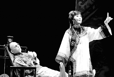 27日,在《金鎖記》中,臺灣著名演員魏海敏(飾曹七巧)(右)與陳清河(飾姜二爺)在演出。