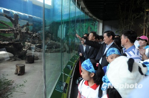 中國臺灣網5月28日消息 據臺灣《聯合晚報》報道,臺北市立動物園今天和四川臥龍保護大熊貓研究中心簽署大熊貓繁殖合作備忘錄。由來訪的四川省委書記劉奇葆、臺北市長郝龍斌見證。劉奇葆允諾,指派優秀專家抵臺,讓團團、圓圓盡快生育后代;郝龍斌則祝這對熊貓“好孕”,早生貴子。(中國臺灣網 張辰劍)