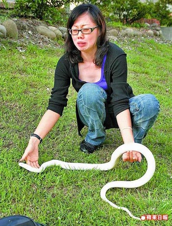新竹縣男子李哲能,19年前開始培育白化臺灣南蛇當寵物,常趁好天氣到文化中心草皮“遛蛇”,引來路人把玩,小朋友還要求父母買蛇回家當寵物。