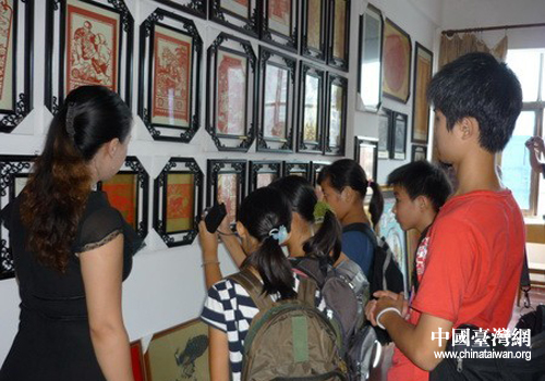 臺(tái)灣小朋友參觀孝感市雕花剪紙研究所(圖片來(lái)源:孝感市臺(tái)辦)