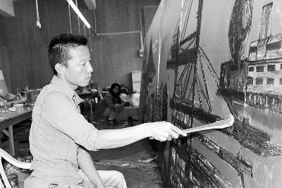 日前,由兩岸三地近千名畫家聯(lián)手繪制的油畫長卷《江山如此多嬌》在海滄區(qū)完成,油畫全長365米,已經(jīng)申報吉尼斯世界紀錄。圖為畫師正在做最后的掃尾工作。記者 徐占升 通訊員 莊烏沉 林廣明 攝