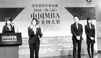 由兩岸10所大學參加的第六屆中國MBA企業案例總決賽,近日在清華大學舉行。此前,選手們經過北方、華南、華東及臺灣4個賽區的激烈角逐,兩岸10所高校代表隊進入總決賽。圖為臺灣政治大學代表隊在總決賽中答辯。櫻子攝