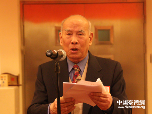 3月9日,黃埔軍校同學會舉辦“兩會”代表、委員聯誼招待會,黃埔軍校同學會會長林上元在招待會上致辭。(中國臺灣網 齊曉靖 攝)