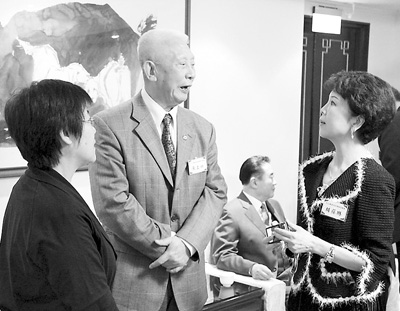 胡葆琳(右)、黃慧南(左)與臺(tái)灣退役上將交談。 連錦添攝
