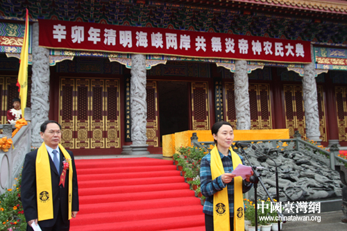 辛卯年清明海峽兩岸共祭炎帝神農氏大典今日在湖南炎陵舉行。圖為祭祀儀式前,中共湖南省委常委李微微在致辭。(中國臺灣網 楊麗 攝)
