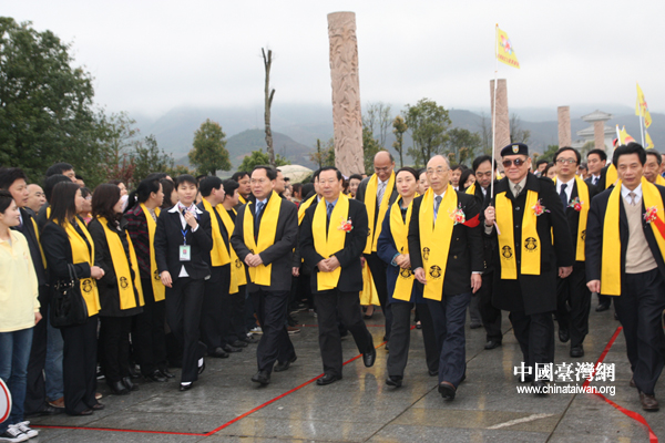 辛卯年清明海峽兩岸共祭炎帝神農氏大典今日在湖南炎陵舉行,圖為兩岸各界代表步入炎帝陵園準備祭祀。(中國臺灣網 楊麗 攝)