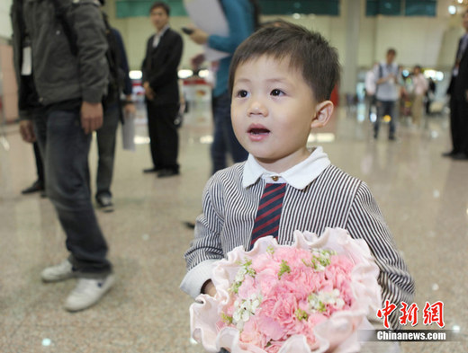 2011年5月2日,大陸著名歌唱家宋祖英抵達臺北,將于5月8日在臺北小巨蛋舉行“宋祖英2011臺北小巨蛋演唱會”,并與臺灣歌手周杰倫、周華健同臺演出。圖為在機場等待宋祖英到來的小“粉絲”。中新社發(fā) 路梅 攝