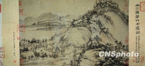 3月14日,十一屆全國人大三次會議閉幕,溫家寶總理答中外記者問。溫家寶總理在回答臺灣記者提問時講了一個故事:“元朝有一位畫家叫黃公望,他畫了一幅著名的《富春山居圖》,79歲完成,完成之后不久就去世了。幾百年來,這幅畫輾轉(zhuǎn)流失,但現(xiàn)在我知道,一半放在杭州博物館,一半放在臺北故宮博物院,我希望兩幅畫什么時候能合成一幅畫。畫是如此,人何以堪。”這是《富春山居圖》... 中新社發(fā) 楊可佳 攝