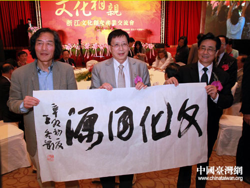 中國臺灣網5月27日臺北消息 26日下午,“2011·文化相親”文化創意產業交流會在在臺北圓山飯店舉行。中共浙江省委書記趙洪祝、臺灣中華文化總會會長劉兆玄、臺北世界貿易中心董事長王志剛出席活動。