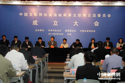中國互聯(lián)網(wǎng)協(xié)會海峽兩岸互聯(lián)網(wǎng)交流委員會19日下午在北京成立。來自大陸互聯(lián)網(wǎng)業(yè)界的59家成員單位出席了儀式。(中國臺灣網(wǎng) 王偉 攝)