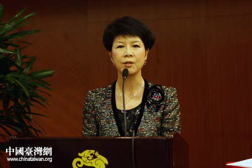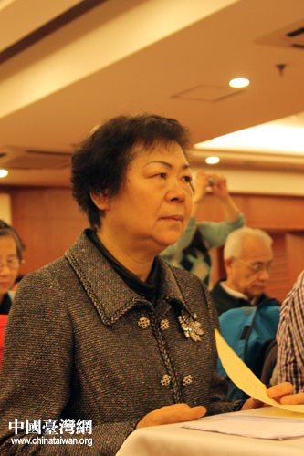 本次征文的獲獎者之一、全國政協委員胡葆琳在頒獎儀式上發表感言。(中國臺灣網 楊麗 攝)