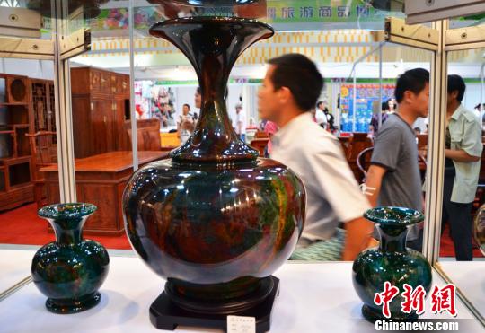 由新疆旅游局和克拉瑪依市人民政府主辦的首屆旅游商品博覽會(huì)10日在此間拉開(kāi)序幕,將持續(xù)到15日結(jié)束,來(lái)自新疆15個(gè)地州市以及山東、上海、福建、廣東等十余個(gè)省市的400余家展商參加。主辦方稱(chēng),是次博覽會(huì)是迄今為止疆內(nèi)參展商最多、規(guī)模最大、特色最突出的旅游商品會(huì)。來(lái)自臺(tái)灣、主營(yíng)七彩玉的沛納金珠寶有限公司也帶來(lái)七彩玉瓶等器皿參展。